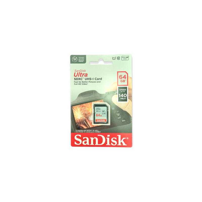 Carte Memoire Sandisk 64Gb Sd Class 10 Ultra Lecture 140Mb/S Full Hd Sdsdunb-064G-Gn6in