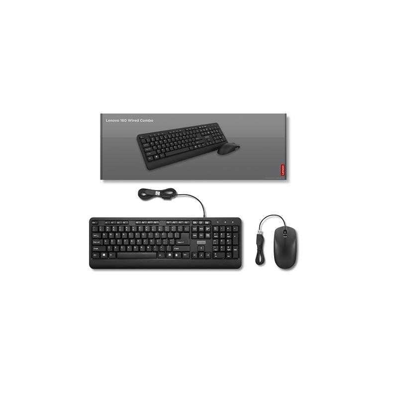 Kit Clavier + Souris Avec Fil Lenovo 160 Combo Originale Noir Azerty Fr