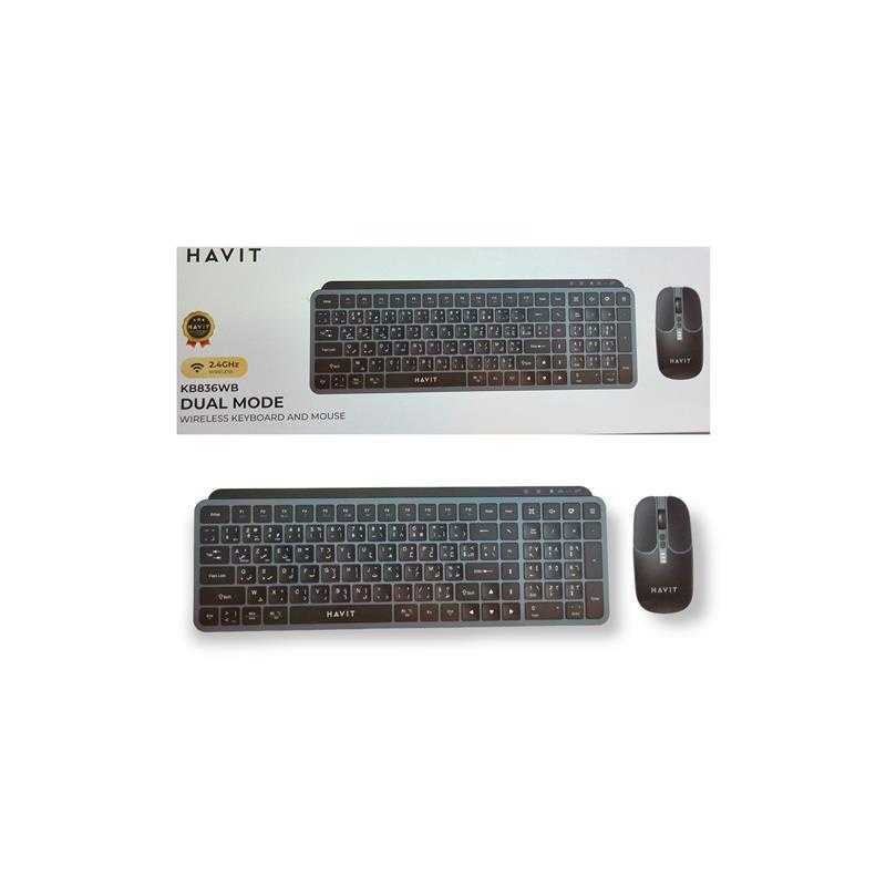 Kit Clavier + Souris Sans Fil Havit Kb836wb Dual Mode 2.4Ghz Et Bluetooth 5.1 Avec Batterie Rechageable Integrer Hvkb-Kb836wb-Ws
